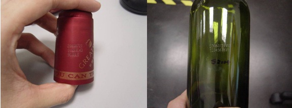 葡萄酒行業(yè)由于產(chǎn)品自身的特點(diǎn),一方面生產(chǎn)速度快,另一方面,產(chǎn)品入箱順序難以保證,針對該行業(yè)的特點(diǎn),易溯科技開發(fā)出一套專門針對葡萄酒行業(yè)的防竄貨管理解決方案。  可以在酒瓶的瓶身上或者瓶徑處利用激光機(jī)標(biāo)刻防竄貨產(chǎn)品ID,如下圖所示。